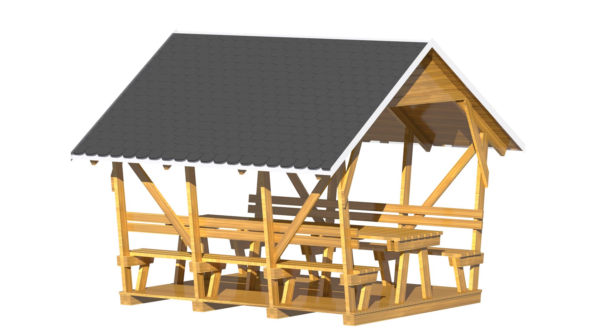 Die Schutzhütte Groß ist eine großzügige, überdachte Sitzgelegenheit, die Schutz vor Sonne und Regen bietet und gleichzeitig zum Verweilen einlädt. Ideal für öffentliche Parks, Spielplätze, Wanderwege oder Schulhöfe – diese robuste Holzkonstruktion vereint Funktionalität mit natürlichem Design.